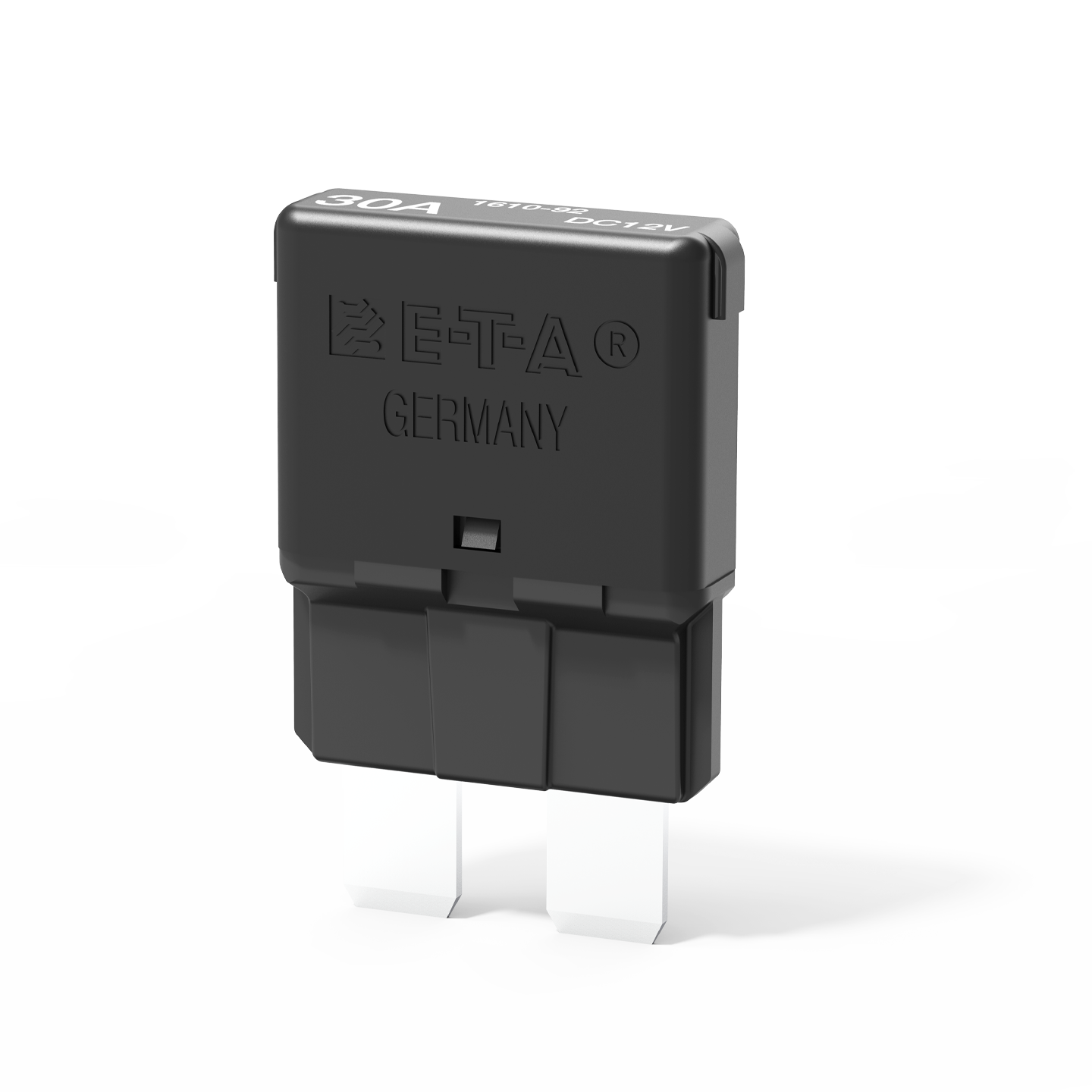 Miniaturised single pole autoreset cycling trip free thermal circuit breaker designed for automotive fuse block installation.