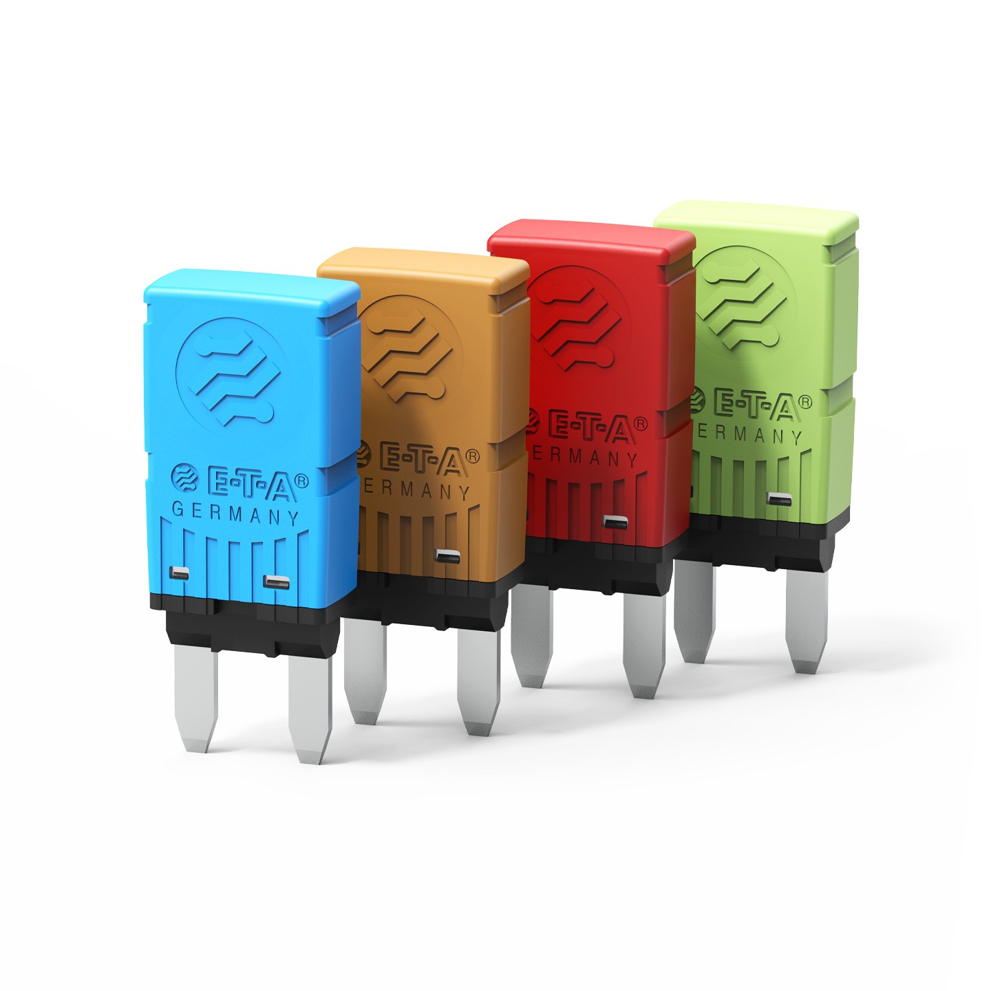 Current ratings correspond to those of blade fuses. Clear colour coding of the ratings: blade fuse and circuit breaker of the same colour have the same rating.