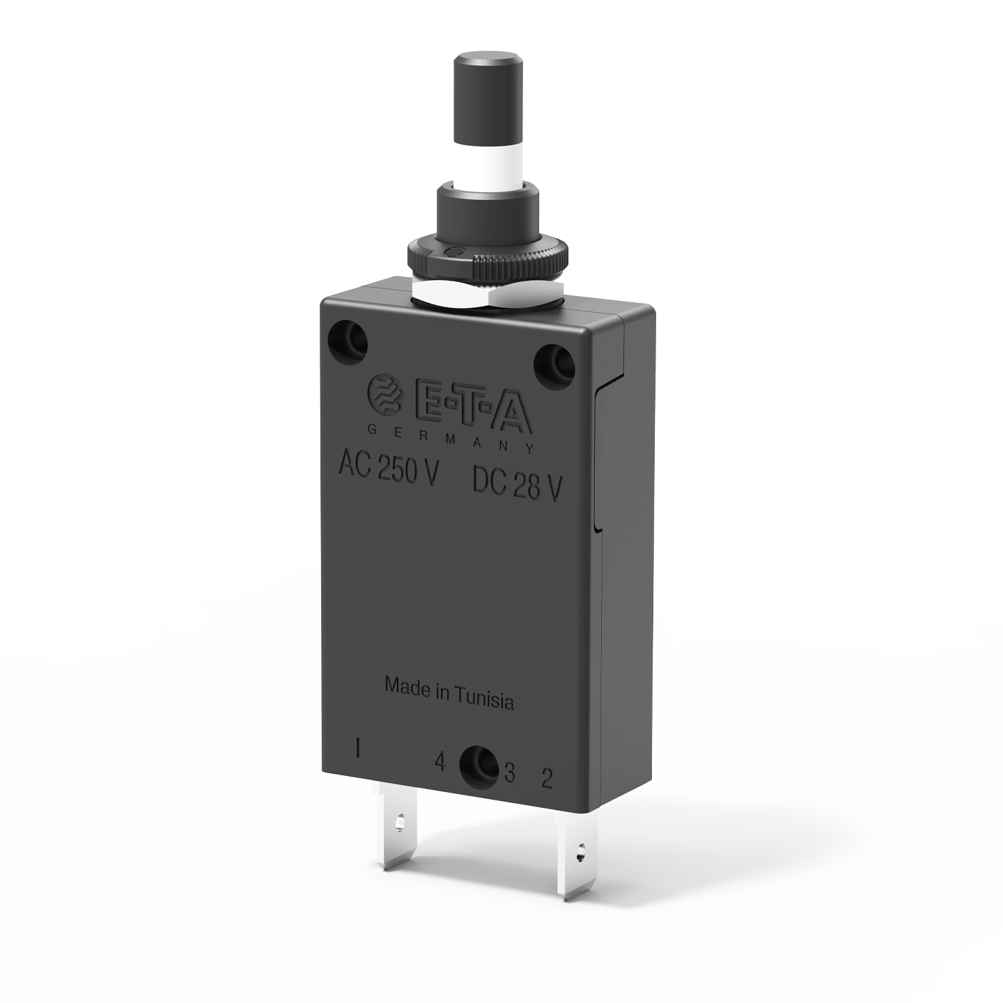Single pole thermal circuit breaker with press-to-reset, tease-free, trip-free, snap action mechanism. Type 2-5700 can be supplied as a push-push switch/circuit breaker (R-type TO CBE to EN 60934 in press-to-reset configuration; S-type with push-push operation), threadneck panel mounting. Options include an additional unprotected circuit tap (-A3).