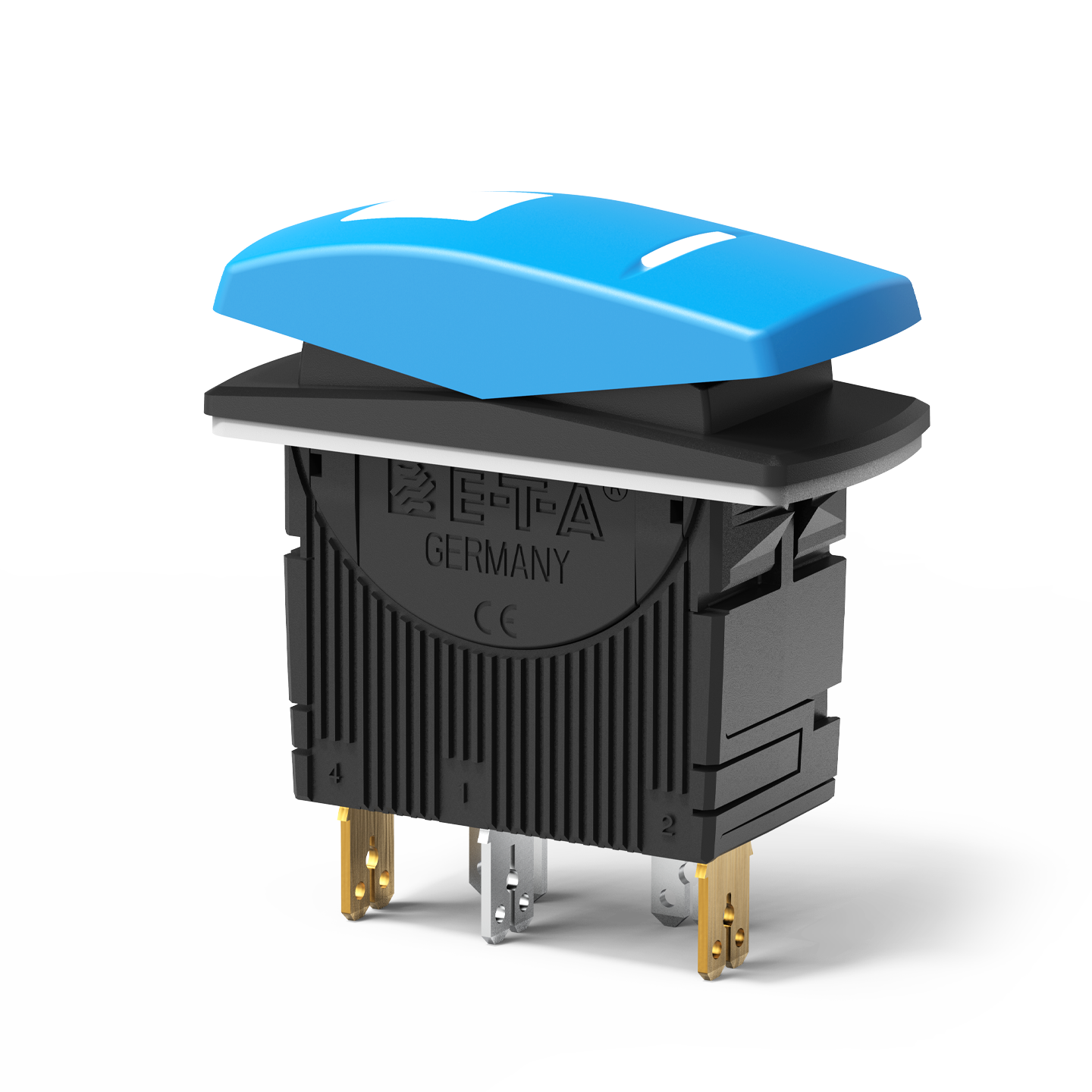 Single pole three-position switch with latching or momentary switch functions. Featuring a soft-touch contoured rocker actuator with optional illumination. The 3131 ist sealed to provide IP66 rated front of panel water splash protection.